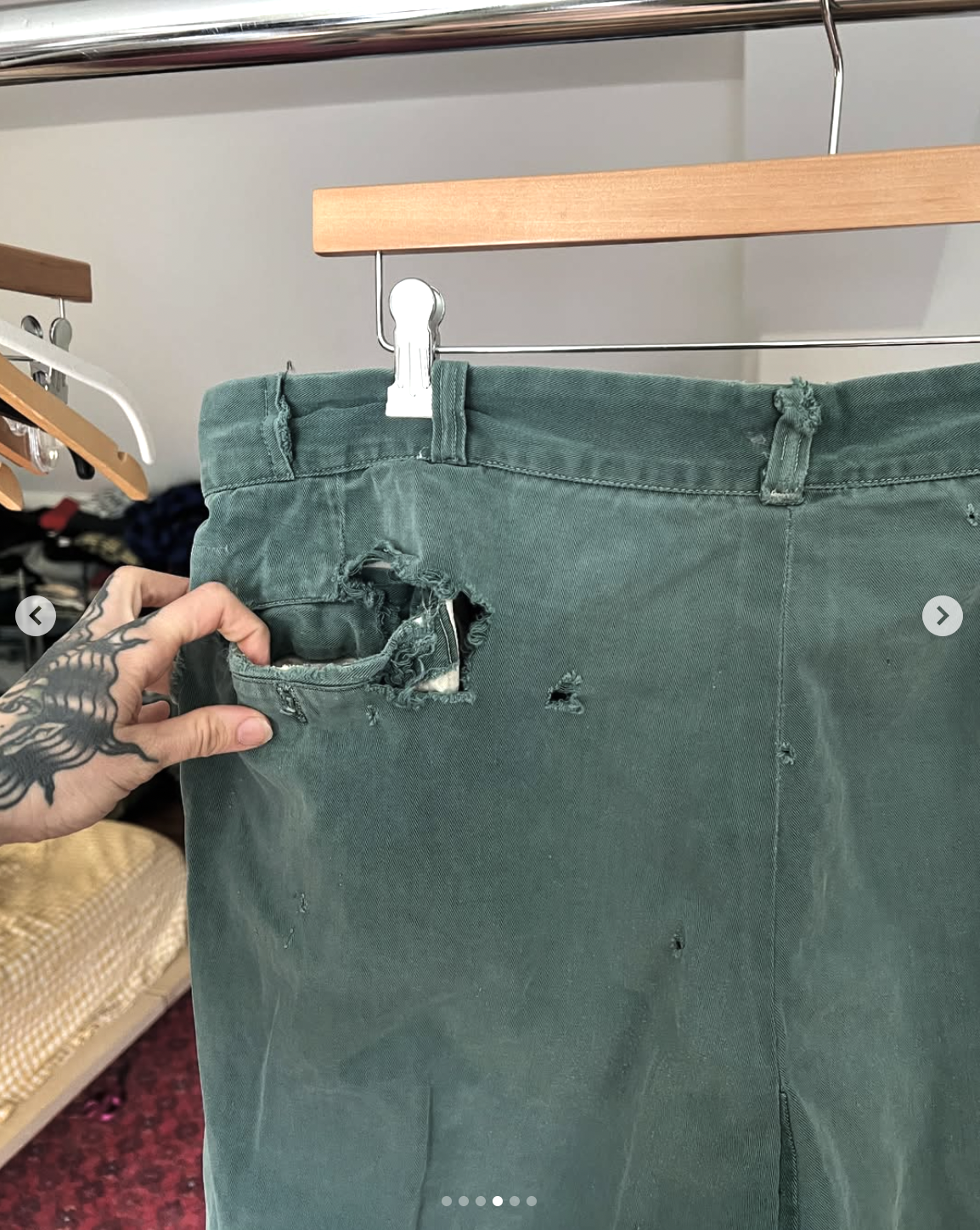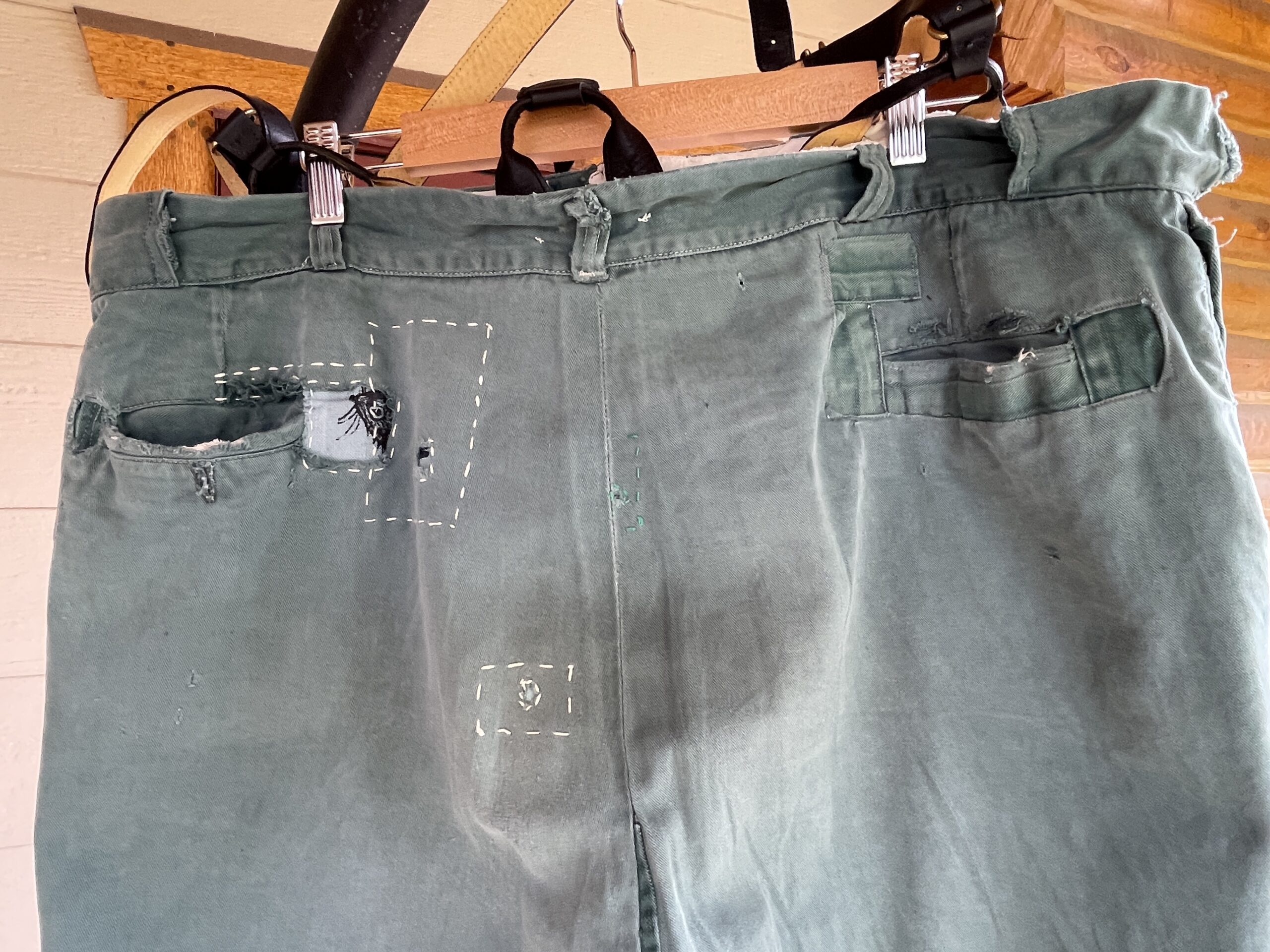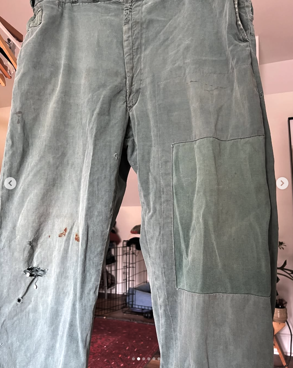 I purchased this pair of 1950s khakis from As Is Vintage on Instagram. They are a size 40 waist, so I decided to wear them oversized with suspenders.